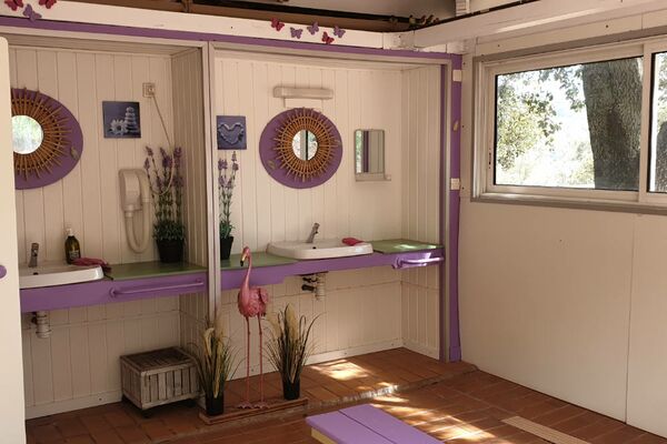 - 4 blocs sanitaires avec : 2 sèche-cheveux, baignoire bébé, table à langer, eau chaude gratuite, WC, douches